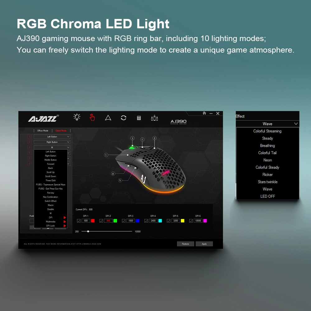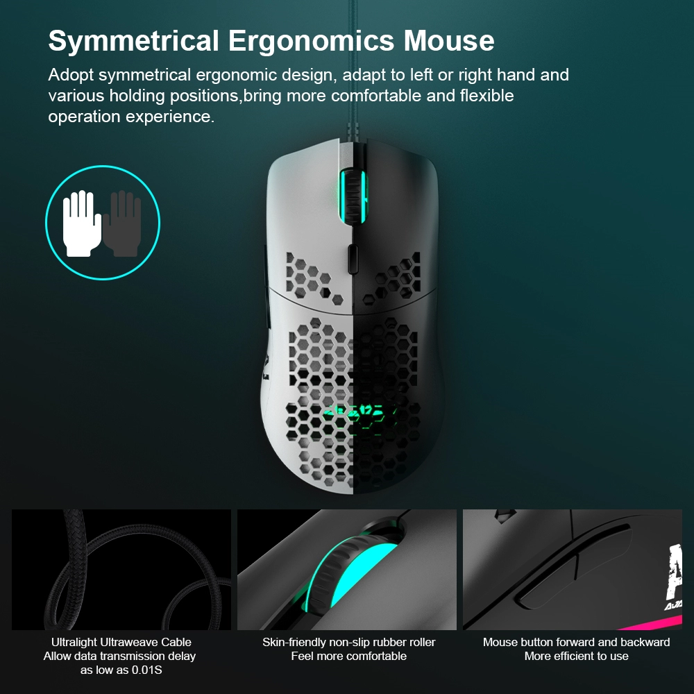 Lightweight honeycomb design high performance gaming mouse. Only 69 gm weight. High performance, PixArt PMW 3338 / 3325 Sensors.