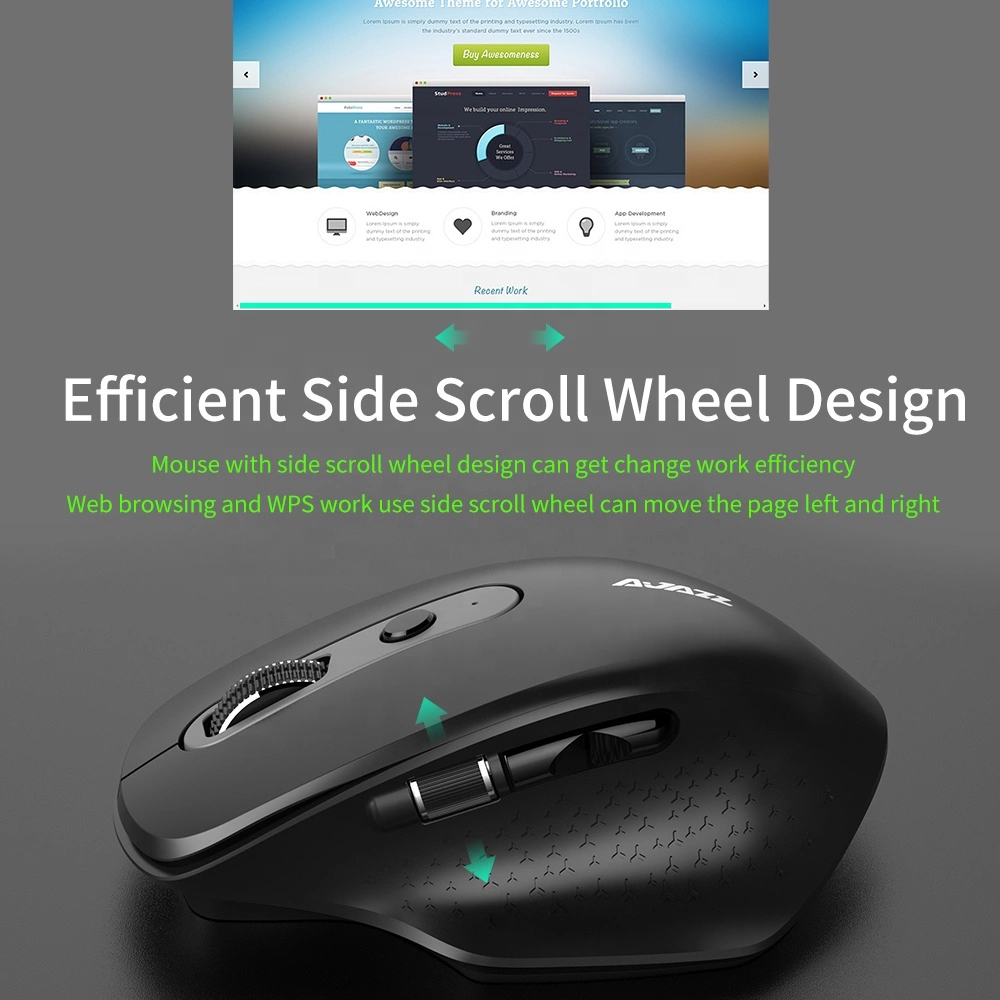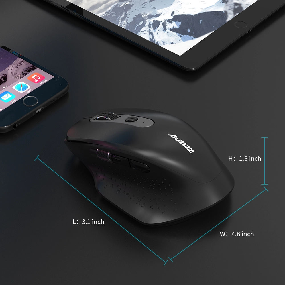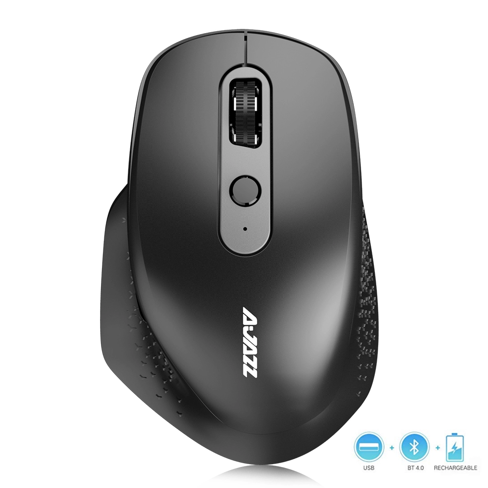 AJAZZ I660T 2.4G Ergonomic Wireless BT 4.0 Gaming Mouse with Side Roller. Easy to control 3 devices. Enery-saving long battery life. Rechargeable Bluetooth mouse.