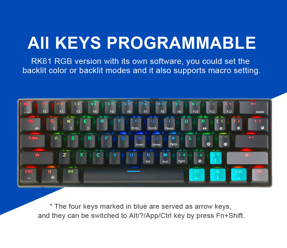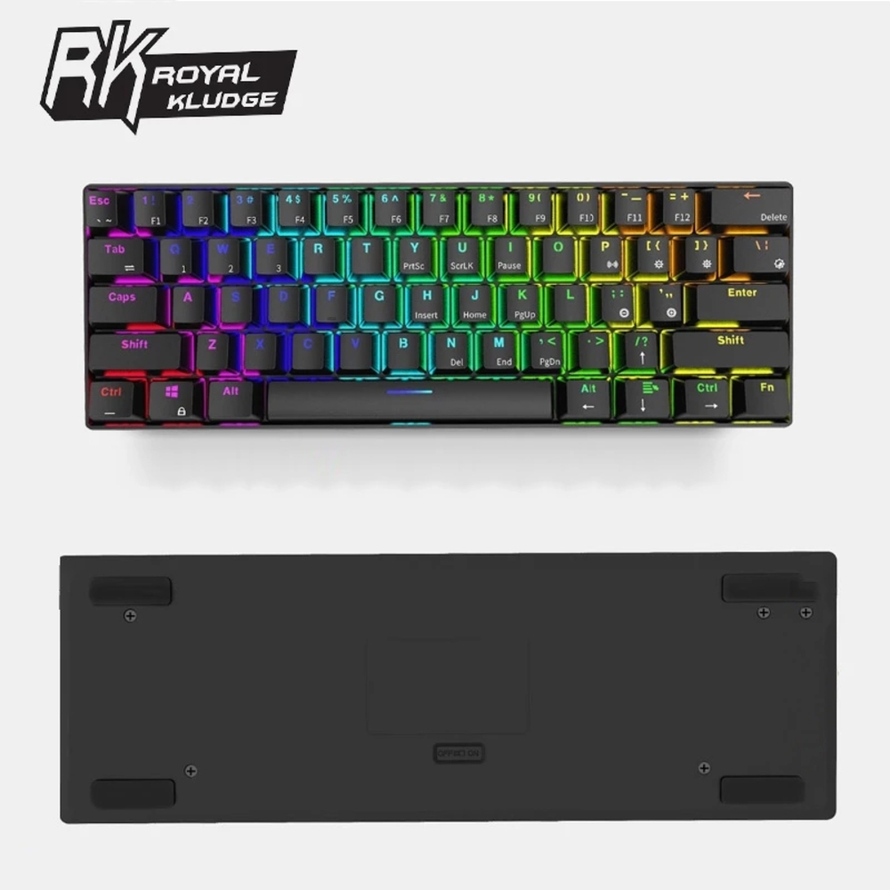 RGB Wireless/Wired 60% Compact Mechanical Keyboard, 61 Keys Bluetooth Gaming and Office Keyboard with Macro Keys and Rechargeable Battery for Windows, Linux and Mac.
